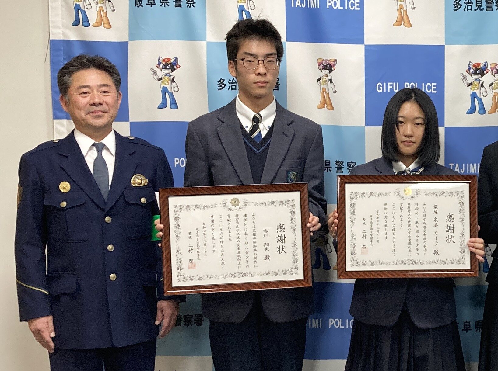防犯動画コンテストに参加 本校生徒が感謝状を受賞