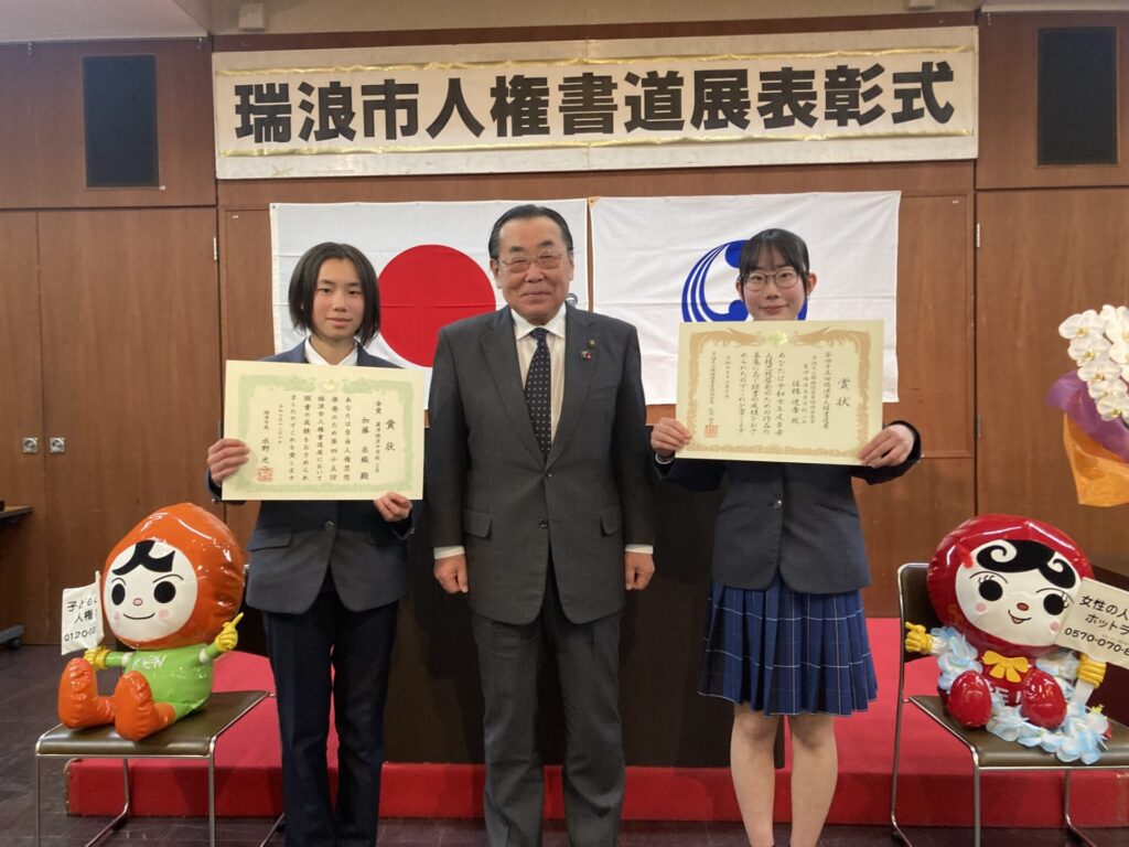 瑞浪市で毎年開催されている「人権書道展」において、本校の生徒2名がそれぞれの部門で受賞しました。