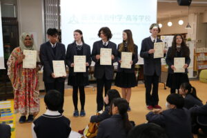 また、その発表に続いて留学修了証の授与式が行われ、留学生たちの努力が讃えられました。