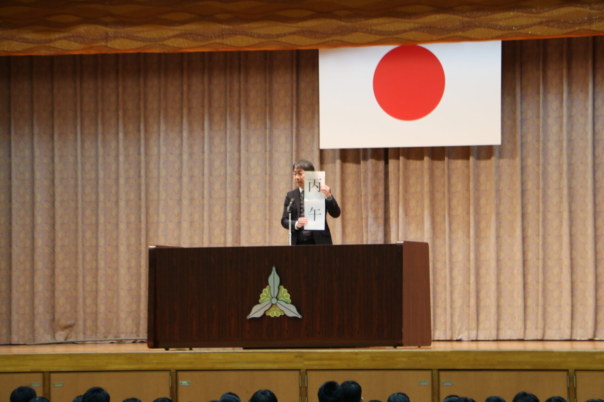 式では藤田校長より、「丙午(ひのえうま)」をテーマとした講話がありました。「丙」も「午」も火の性質を持ち、活力や勢いを象徴することから、新たな挑戦や飛躍にふさわしい年とされています。校長からは「目標に向かって果敢に挑戦してほしい」と、生徒たちの新学期への意欲を高める励ましの言葉が送られました。そのような節目に行われた始業式で、生徒たちは気持ちを新たにし、校長の講話に真剣な表情で耳を傾けていました。
