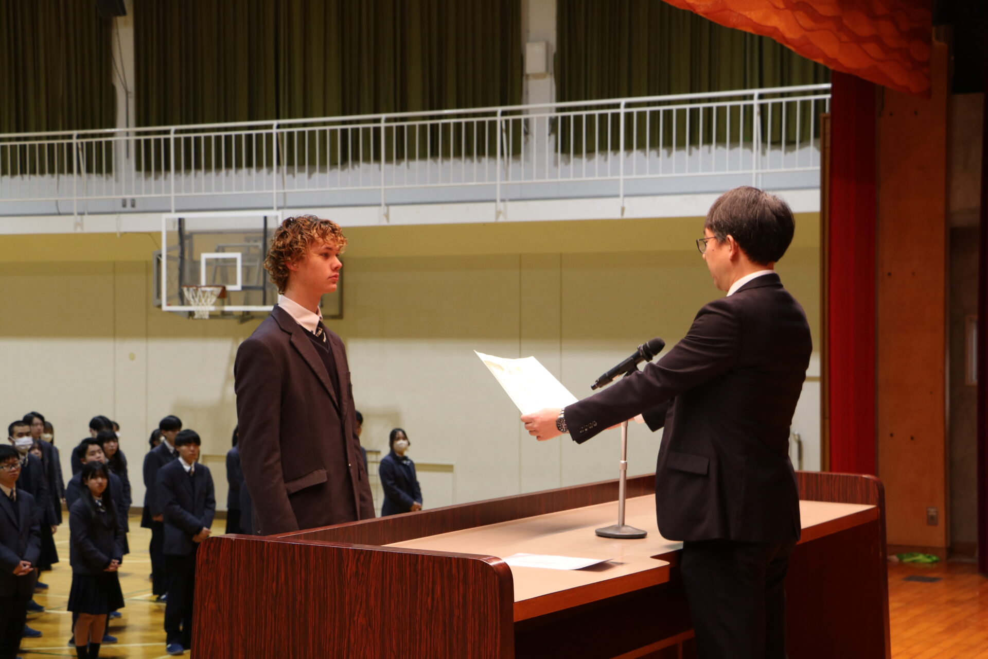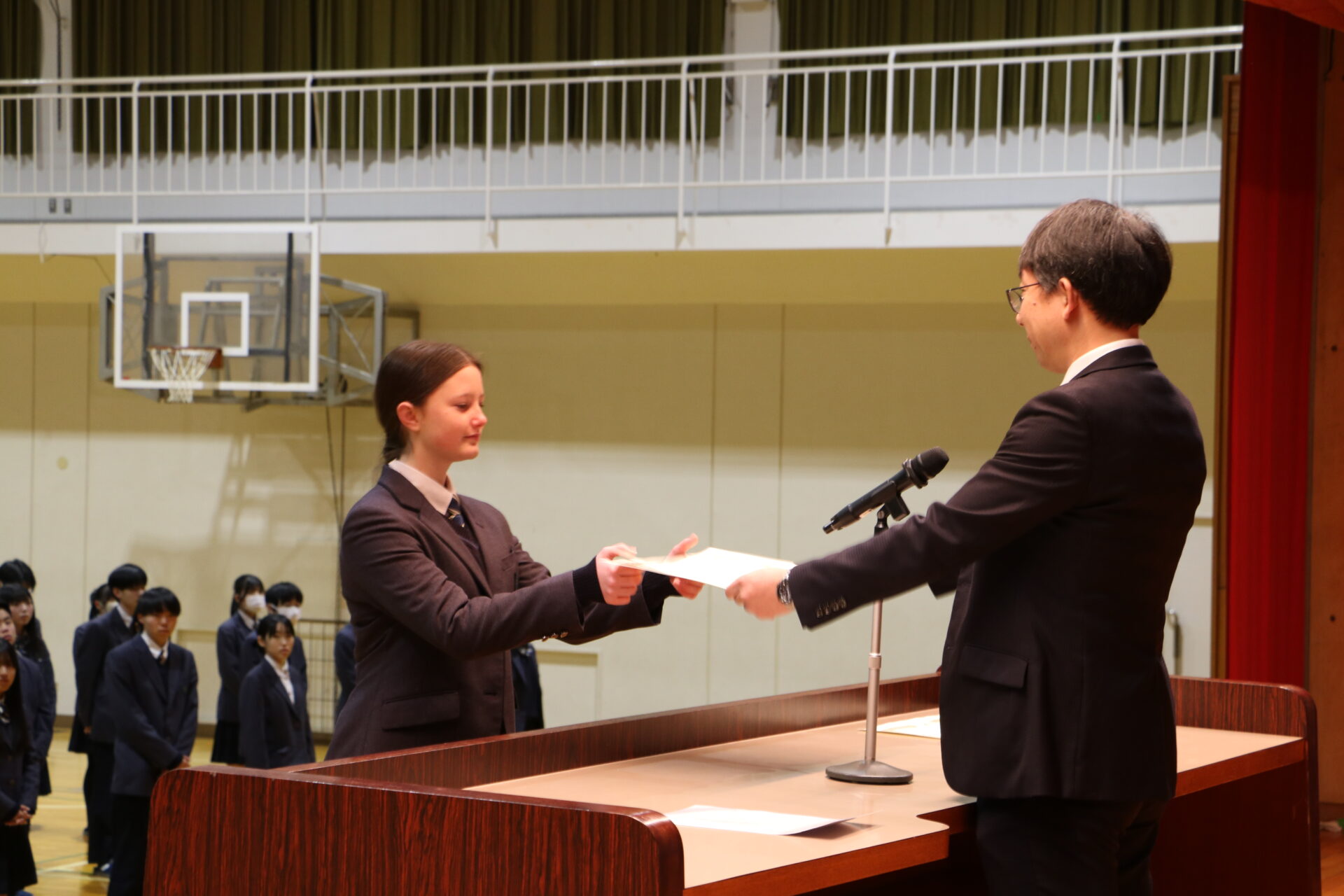 式ではこのほか、留学生への修了証書の授与も行われ、全校生徒から温かい拍手が送られました。