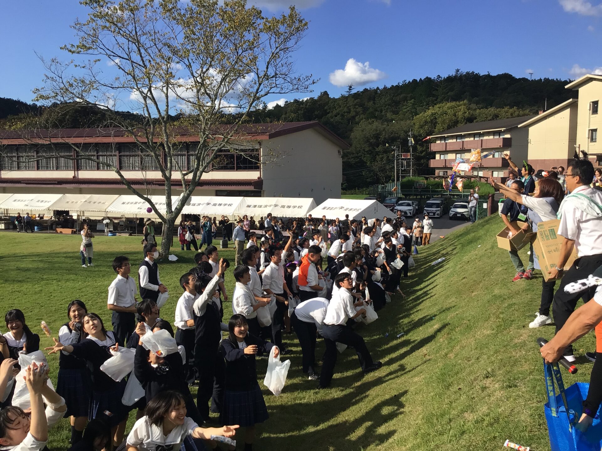 10月17日(金)に第3体育館横の芝生にて「ガーデンパーティー」が開催されました。この行事は、受験に向けて日々努力を重ねる高校3年生にエールを送ろうと、保護者会が主催する恒例のイベントです。