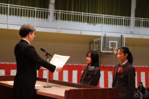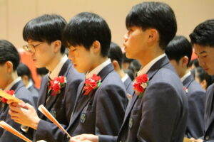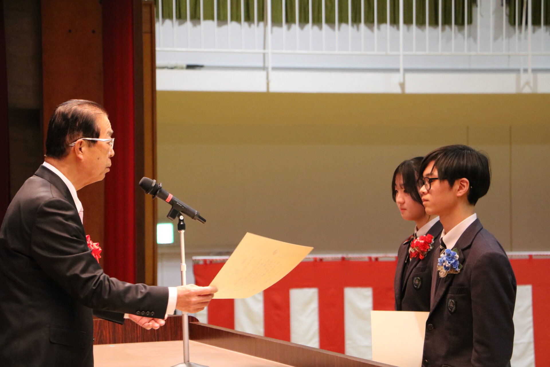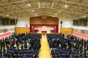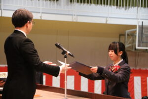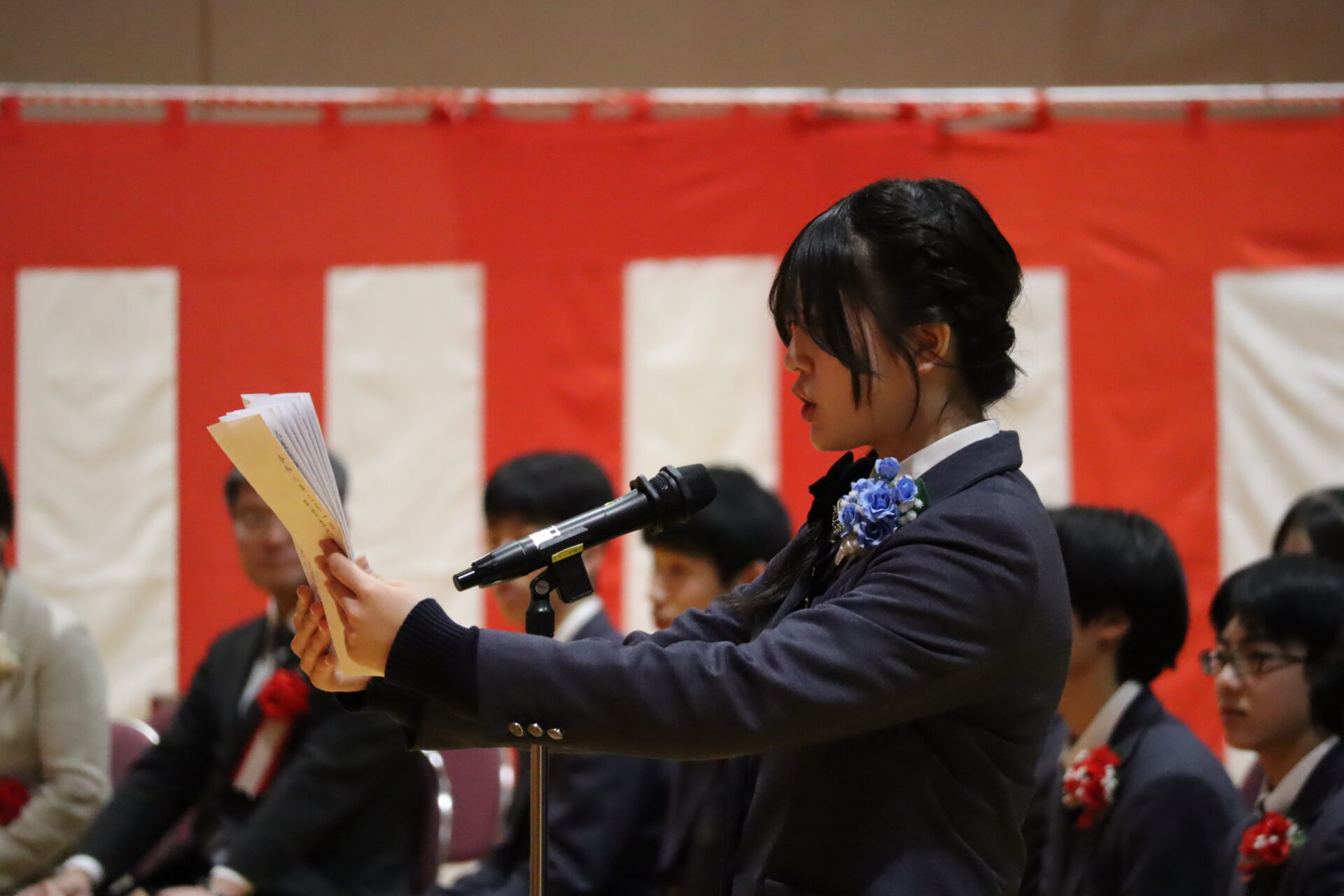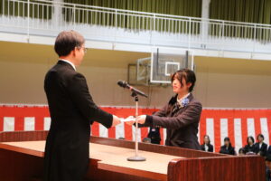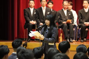 在校生代表による送辞、卒業生代表による答辞では、これまでの日々への感謝と新たな決意が述べられ、会場は温かな雰囲気に包まれました。式の最後には送別の歌を斉唱し、卒業生の前途を祝福しました。