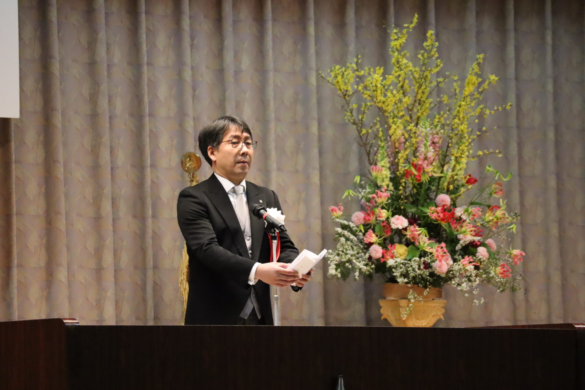 続いて廣池理事長は、日本の歴史を紐解きながら、ご皇室と日本の伝統に触れ、「日本人としての誇りを胸に、これからの人生を力強く歩んでほしい」と祝辞を述べました。