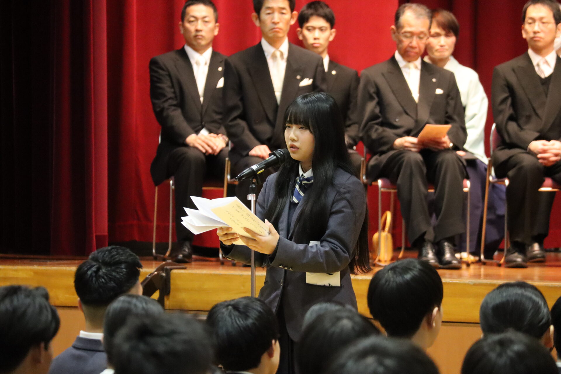 来賓祝辞では、衆議院議員 古屋圭司様より、「どのようなことにも積極的にチャレンジすることの大切さ」についてお話があり、「失敗しても再挑戦できる。皆さんには無限の可能性がある」と、卒業生の未来に期待を寄せる力強いエールが送られました。