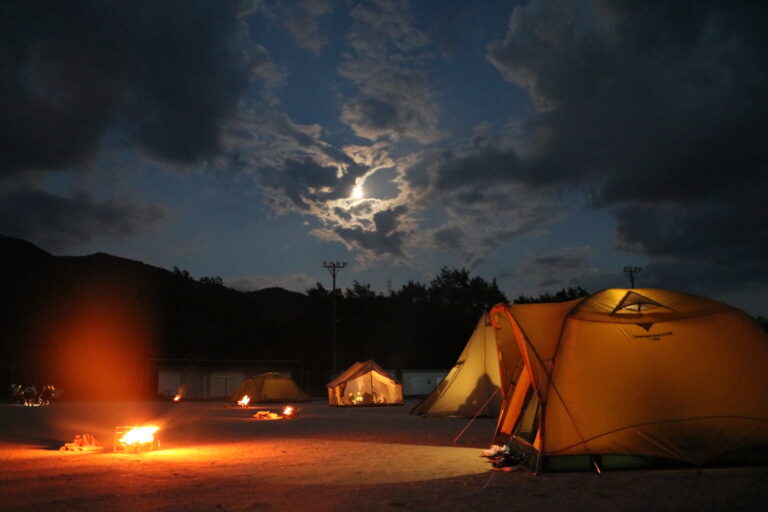 夕食後は、アウトドア体験が行われました。受講生たちはアウトドア用のカップに紐を取り付けて持ちやすくしたり、