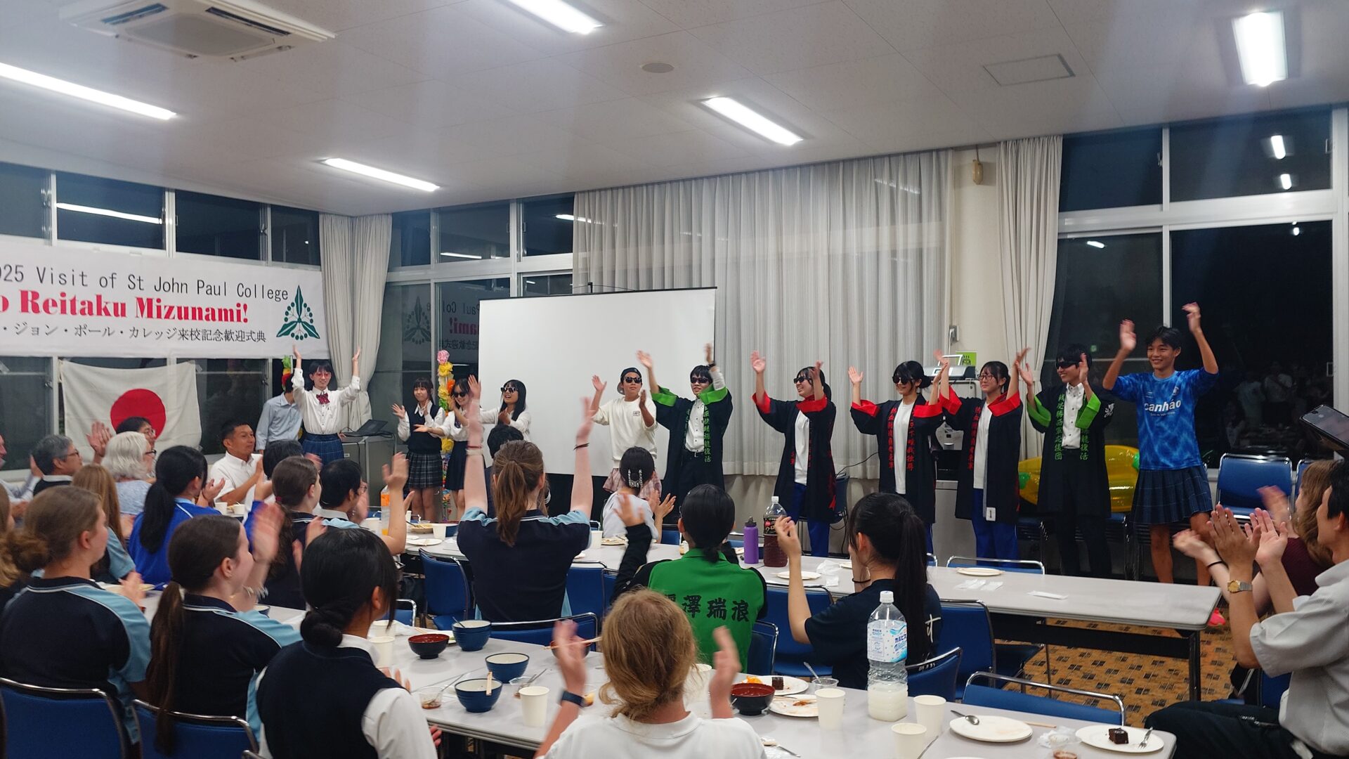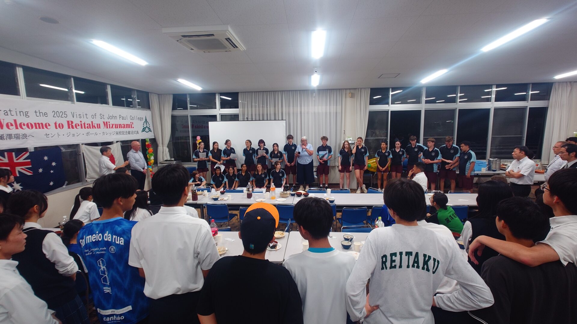 On Friday, October 3rd, students of Reitaku Mizunami Junior and Senior High School gathered in the school cafeteria to mark the final day of exchange with students from our Australian sister school, St John Paul College (SJPC).