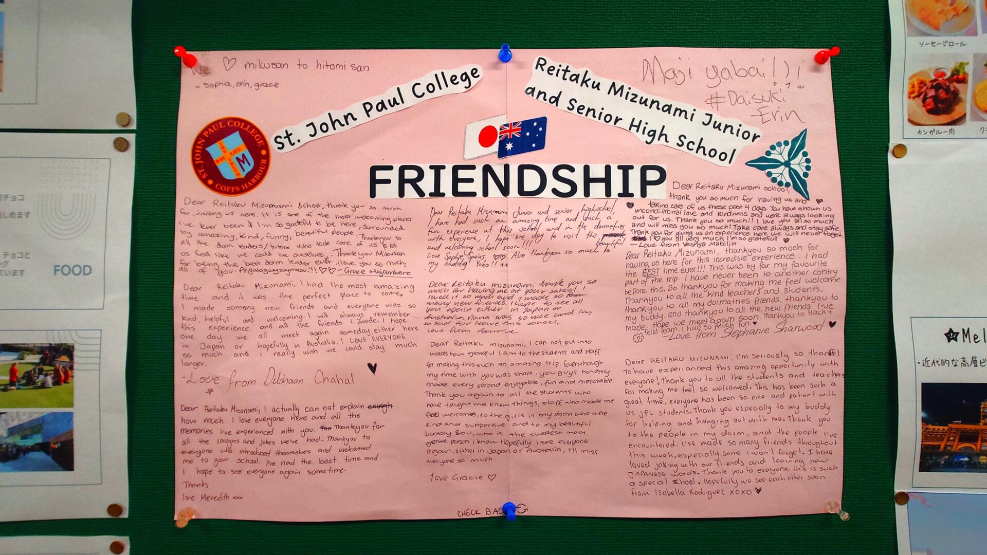 また、SJPCの生徒たちは、今回の滞在の思い出や感謝の気持ちを綴ったポスターを残してくれました。