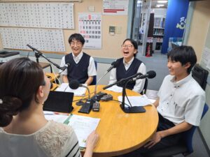 2025年9月26日(金)、太鼓部の高校2年生3名が多治見市のラジオ局「FM PiPi」に出演しました。出演した番組は「PiPi Twilight Way」内のコーナー「NOW&FUTURE」(18:10~18:30)で、太鼓部としては今回で10回目の出演となります。