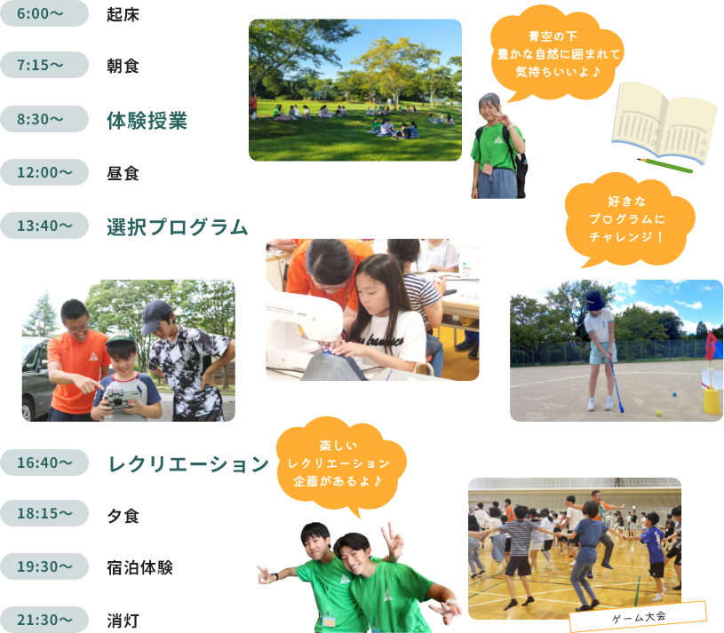 ゴルフコースもある学校なんですよ!さあ、思いっきり五感を使って学びましょう!